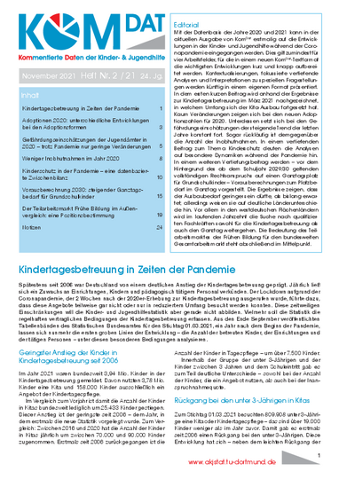 Mit der Datenbasis des Jahres 2020 kann erstmalig auf die Entwicklungen in der Kinder- und Jugendhilfe während der Coronapandemie eingegangen werden. Entgegen der Vermutungen großer Rückgänge an Meldungen bei einem Verdacht auf Kindeswohlgefährdung aufgrund von Kontaktbeschränkungen, hat sich der steigende Trend der letzten Jahre bei den Gefährdungseinschätzungen konstant fortgesetzt. Rückläufig ist demgegenüber die Anzahl der Inobhutnahmen. Analysen zum Kinderschutz deuten auf besondere Dynamiken während der Pandemie hin. Es zeigen sich beispielsweise eine Verringerung der Hinweise auf Kindeswohlgefährdung aus Schulen sowie vermehrte Meldungen und Interventionen aufgrund psychischer Misshandlungen.