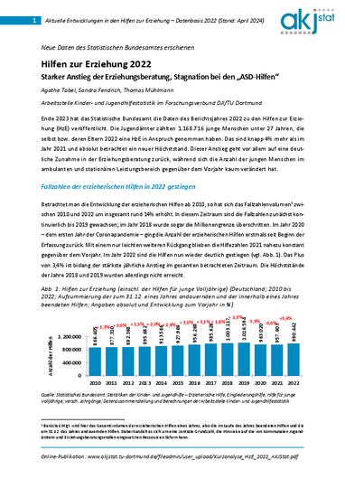 Ende 2023 hat das Statistische Bundesamt die Daten des Berichtsjahres 2022 zu den Hilfen zur Erziehung (HzE) veröffentlicht.