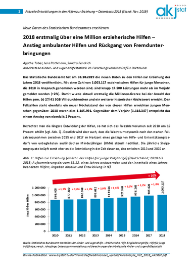 Kurzanalyse der AKJStat zu den neuen HzE-Daten: 2018 erstmalig über eine Million erzieherische Hilfen – Anstieg ambulanter Hilfen und Rückgang von Fremdunterbringungen