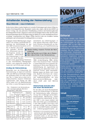 Im Februar wurden vom Statistischen Bundesamt die Ergebnisse der KJH-Statistik für das Erhebungsjahr 1997 zu den Hilfen zur Erziehung, den vorläufigen Schutzmaßnahmen und den Adoptionen vorgelegt. Bei der Analyse durch die Dortmunder Arbeitsstelle haben sich in mehreren Bereichen interessante Ergebnisse ergeben, die in kurzer und prägnanter Form unter Einbeziehung der aktuellen Fachdebatten dargestellt und kommentiert werden.