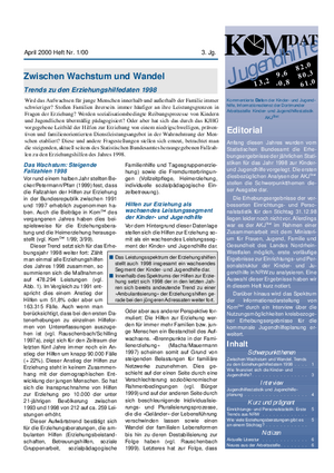 Anfang diesen Jahres wurden vom Statistischen Bundesamt die Erhebungsergebnisse der jährlichen Statistiken für das Jahr 1998 zur Kinder- und Jugendhilfe vorgelegt. Die ersten diesbezüglichen Analysen der AKJStatstellen die Schwerpunktthemen dieser Ausgabe dar.
