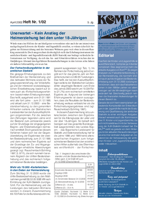 Das Feld der Kinder- und Jugendhilfe ist ausdifferenziert, komplex, ja mitunter kompliziert. Das zeigt einmal mehr die aktuelle Ausgabe von KomDat . So zeigen Analysen zur Fallzahlentwicklung in der Heimerziehung, die nunmehr endlich auch auf die Angaben der Bestandserhebung zum 31.12.2000 zurückgreifen können, dass sich das Fallzahlvolumen in den 1990er-Jahren vor allem bezogen auf Minderjährige kaum verändert hat. Gleichzeitig jedoch nehmen die finanziellen Aufwendungen für diesen Bereich zu.