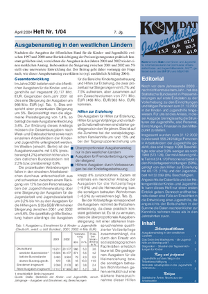 Noch vor dem Jahresende 2003 - nach nicht einmal einem Jahr - hat das Statistische Bundesamt in Pressemitteilungen auf erste Eckdaten zu der Vollerhebung zu den Einrichtungen und tätigen Personen zum 31.12.2002 in der Kinder- und Jugendhilfe hingewiesen. Für uns ist dies Anlass, in dieser Ausgabe brennglasartig die Strukturen der Jugendhilfe, also Personal, Einrichtungen, Finanzen in den Mittelpunkt zu stellen.