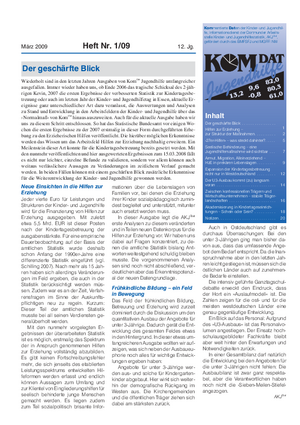 Wiederholt sind in den letzten Jahren Ausgaben von KomDat Jugendhilfe umfangreicher ausgefallen. Immer wieder haben uns, ob Ende 2006 das tragische Schicksal des 2-jährigen Kevin, 2007 die ersten Ergebnisse der verbesserten Statistik zur Kindertagesbetreuung oder auch im letzten Jahr der Kinder- und Jugendhilfetag in Essen, aktuelle Ereignisse ganz unterschiedlicher Art dazu veranlasst, die Auswertungen und Analysen zu Stand und Entwicklung in den Arbeitsfeldern der Kinder- und Jugendhilfe über das „Normalmaß“ von KomDat hinaus auszuweiten. Auch für die aktuelle Ausgabe haben wir uns zu diesem Schritt entschlossen. So hat das Statistische Bundesamt vor einigen Wochen die ersten Ergebnisse zu der 2007 erstmalig in dieser Form durchgeführten Erhebung zu den Erzieherischen Hilfen veröffentlicht. Die hierüber möglichen Erkenntnisse werden das Wissen um das Arbeitsfeld Hilfen zur Erziehung nachhaltig erweitern. Ein Meilenstein dieser Art konnte für die Kindertagesbetreuung bereits gesetzt werden. Mit den nun mehr veröffentlichten und hier ausgewerteten Ergebnissen zum 15. 03. 2008 fällt es nicht nur leichter, einzelne Befunde zu validieren, sondern vor allem können auch weitaus verlässlichere Aussagen zu Veränderungen im zeitlichern Verlauf gemacht werden. In beiden Fällen können mit einem geschärften Blick zusätzliche Erkenntnisse für die Weiterentwicklung der Kinder- und Jugendhilfe gewonnen werden.