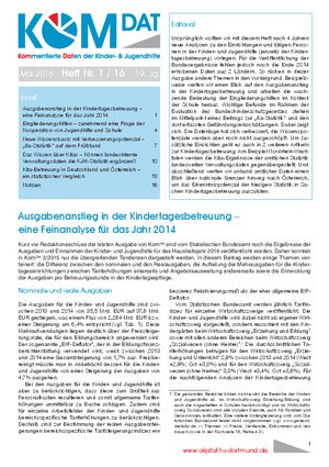 Ursprünglich wollten wir mit diesem Heft nach 4 Jahren neue Analysen zu den Einrichtungen und tätigen Personen in der Kinder- und Jugendhilfe (jenseits der Kindertagesbetreuung) vorlegen. Für die Veröffentlichung der Bundesergebnisse fehlen jedoch noch die Ende 2014 erhobenen Daten aus 2 Ländern. So rücken in dieser Ausgabe andere Themen in den Vordergrund. Beispielsweise werfen wir einen Blick auf den Ausgabenanstieg in der Kindertagesbetreuung und arbeiten die wachsende Bedeutung der Eingliederungshilfen im Kontext der Schule heraus. Wichtige Befunde im Rahmen der Evaluation des Bundeskinderschutzgesetzes stehen im Mittelpunkt eines Beitrags zur „8a-Statistik“ und den dort erfassten Gefährdungseinschätzungen. Dabei zeigt sich: Die Datenlage hat sich verbessert, die Wissenspotenziale werden aber noch nicht ausgeschöpft. Um zusätzliche Einsichten geht es auch in 2 weiteren Artikeln zur Kindertagesbetreuung: Am Beispiel Nordrhein-Westfalen werden die Kita-Ergebnisse der amtlichen Statistik landesweiten Verwaltungsdaten gegenübergestellt. Und abschließend werfen wir anhand amtlicher Daten einen Blick über nationale Grenzen hinweg nach Österreich, um das Erkenntnispotenzial der hiesigen Statistik in Sachen Kindertagesbetreuung auszuloten.
