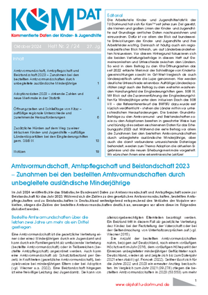 Die Arbeitsstelle Kinder- und Jugendhilfestatistik der TU Dortmund hat sich für Kom Dat seit jeher zum Ziel gesetzt, die kleinen und großen Linien der Kinder- und Jugendhilfe auf Grundlage amtlicher Daten nachzuzeichnen und einzuordnen. Dafür ist vor allem der Blick auf bundesweite Entwicklungen der Kinder- und Jugendhilfe und ihre Arbeitsfelder wichtig. Dennoch ist häufig auch ein regionalspezifischer Blick hilfreich, um auf Länderbesonderheiten hinzuweisen. Vor diesem Hintergrund fokussieren sich die beiden Vertiefungsbeiträge in diesem Heft auf Gemeinsamkeiten und Unterschiede zwischen den Ländern. So wird in dem Beitrag zu den Kita-Öffnungszeiten das seit 2022 erfasste Merkmal der Schließtage von Kindertageseinrichtungen sowohl im Ost-West-Vergleich als auch länderspezifisch unter die Lupe genommen. Hier werden deutliche Unterschiede erkennbar. Auffällige Länderdisparitäten zeigt auch der Beitrag zu dem weiterhin wachsenden Handlungsfeld der Eingliederungshilfen gem. SGB IX. Mit Blick auf die Zusammenführung der Eingliederungshilfen für Minderjährige unter dem inklusiven Dach des SGB VIII – der Referentenentwurf des BMFSFJ dazu wurde erst kürzlich veröffentlicht – stehen die Länder mithin vor unterschiedlichen Herausforderungen. Die beiden Grundinfo Beiträge zu den Amtsvormund- und Beistandschaften sowie zu den Adoptionen bereiten in gewohnter Weise kurz und bündig die soeben erschienenen Daten für das Erhebungsjahr 2023 auf. Während der erste Beitrag vor allem die Zunahmen bei den bestellten Amtsvormundschaften durch unbegleitete ausländische Minderjährige, aber auch die damit verbundene unzureichende Datenlage behandelt, werden zum Thema Adoption die aktuellen Ergebnisse und die neuen Erhebungsmerkmale vorgestellt.