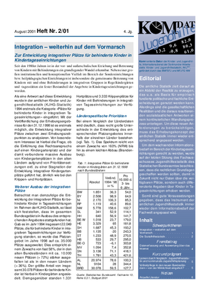 Seit den 1980er Jahren ist in der vor- und außerschulischen Erziehung und Betreuung von Kindern mit Behinderungen ein grundlegender Wandel erkennbar. Neben einer großen institutionellen und konzeptionellen Vielfalt im Bereich der Sondereinrichtungen bzw. heilpädagogischen Einrichtungen ist insbesondere die gemeinsame Betreuung von Kindern mit und ohne Behinderungen in integrativen Gruppen in Regelkindergärten und -tagesstätten ein fester Bestandteil der Angebote in Kindertageseinrichtungen geworden.