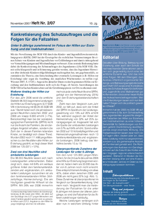 Debatten über Bildung, Betreuung und Erziehung, aber auch den Schutz der nachwachsenden Generationen zeichnen sich gegenwärtig durch eine beachtliche Dynamik aus. Und das nicht ohne Folgen. Mit dem Elterngeld, dem Ausbau öffentlich organisierter Bildungs- und Betreuungsangebote (siehe auch Heft 1/07) sowie einer Konkretisierung des Schutzauftrages für die Kinder- und Jugendhilfe sind Maßnahmen getroffen worden, die zu einer neuen Kultur des Aufwachsens beitragen sollen. Welche Entwicklungen lassen sich nun festhalten? Zeigen sich die politisch gewollten Effekte?