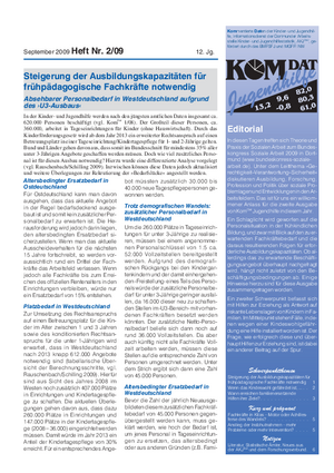 Ein Schlaglicht wird geworfen auf die Personalsituation in der frühkindlichen Bildung, und zwar mit Blick auf den zu erwartenden Fachkräftebedarf und die daraus resultierenden Folgen für erforderliche Ausbildungskapazitäten. Ob allerdings das zu erwartende Beschäftigungsangebot überhaupt nachgefragt wird, hängt nicht zuletzt von den Beschäftigungsbedingungen ab. Einige Hinweise hierzu sind für diese Ausgabe zusammengetragen worden.