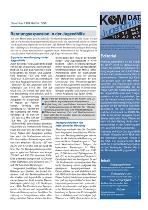 KomDat Jugendhilfe ist als Organ der AKJStat nicht nur darauf ausgerichtet, die zuletzt verfügbaren Erhebungsergebnisse der KJHG-Statistik kurz darzustellen und fachlich zu kommentieren. Vielmehr lebt KomDat gerade auch von den Widersprüchen und Ergänzungen seiner Leserschaft. Gleichgültig ob zur Frage nach der Kostenexplosion in der Jugendhilfe oder zum Trägerspektrum in der Jugendarbeit, bieten die hieraus erwachsenden Diskussionen immer wieder neue Anregungen für die fachliche Auseinandersetzung mit den Ergebnissen und dem Instrument der KJHG-Statistik. In der letzten Ausgabe diesen Jahres setzt sich Frau Weber kritisch mit dem Beitrag »Mädchen - benachteiligt in der Erziehungshilfe?« aus Heft 2/99 auseinander