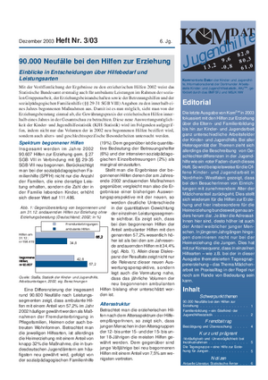 Die letzte Ausgabe von KomDat in 2003 fokussiert mit den Hilfen zur Erziehung über die Eltern- und Familienbildung bis hin zur Kinder- und Jugendarbeit ganz unterschiedliche Arbeitsfelder der Kinder- und Jugendhilfe. Bei aller Heterogenität der Themen zieht sich allerdings die Beschreibung von Geschlechterdifferenzen in der Jugendhilfe wie ein "roter Faden" durch dieses Heft. So wird beispielsweise für die Offene Kinder- und Jugendarbeit in Nordrhein-Westfalen gezeigt, dass bei den BesucherInnen von Einrichtungen mit zunehmenden Alter der Mädchenanteil zurückgeht. Dies stellt sich wiederum für die Hilfen zur Erziehung und hier insbesondere für die Heimerziehung bundesweit genau anders herum dar. Je älter die AdressatInnen hier sind, desto höher ist auch der Anteil weiblicher junger Menschen.