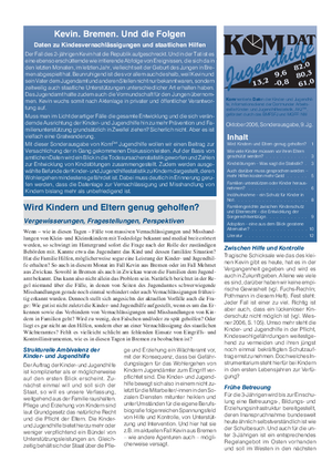 Wenn - wie in diesen Tagen - Fälle von massiven Vernachlässigungen und Misshandlungen von Klein- und Kleinstkindern mit Todesfolge bekannt und medial breit erörtert werden, so schwingt im Hintergrund sofort die Frage nach der Rolle der zuständigen Behörden mit. Kannte etwa das Jugendamt das Kind und dessen familiäre Situation? Hat die Familie Hilfen, möglicherweise sogar eine Leistung der Kinder- und Jugendhilfe erhalten? So auch in diesem Monat im Fall Kevin aus Bremen oder im Fall Mehmet aus Zwickau. Sowohl in Bremen als auch in Zwickau waren die Familien dem Jugendamt bekannt. Das kann also nicht allein das Problem sein. Natürlich berichtet in der Regel niemand über die Fälle, in denen von Seiten des Jugendamtes schwerwiegende Misshandlungen gerade noch einmal verhindert oder auch Vernachlässigungen frühzeitig erkannt wurden. Dennoch stellt sich angesichts der aktuellen Vorfälle auch die Frage: Wie gut ist nicht zuletzt die Kinder- und Jugendhilfe aufgestellt, wenn es um das Erkennen sowie das Verhindern von Vernachlässigungen und Misshandlungen von Kindern in Familien geht? Wird zu wenig, den Falschen und/oder zu spät geholfen? Oder liegt es gar nicht an den Hilfen, sondern eher an einer Vernachlässigung des staatlichen Wächteramtes? Fehlt es vielleicht schlicht am fehlenden Einsatz von Eingriffs- und Kontrollinstrumenten, wie es in diesen Tagen in Bremen zu beobachten ist?
