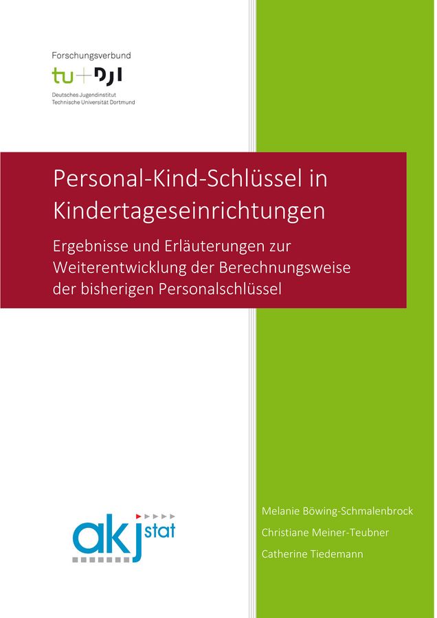 Böwing-Schmalenbrock, M./Meiner-Teubner, C./Tiedemann C. (2022): Personal-Kind-Schlüssel in Kindertageseinrichtungen. Ergebnisse und Erläuterungen zur Weiterentwicklung der Berechnungsweise der bisherigen Personalschlüssel. Eigenverlag Forschungsverbund DJI/TU Dortmund URL: https://www.forschungsverbund.tu-dortmund.de/fileadmin/user_upload/AKJStat_Personal-Kind-Schluessel_in_Kitas.pdf [Download]